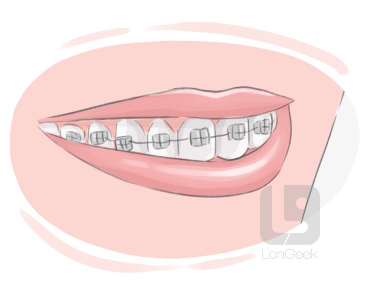 an orthodontic device made of metal wires that is fitted in the mouth to push teeth in the right position
