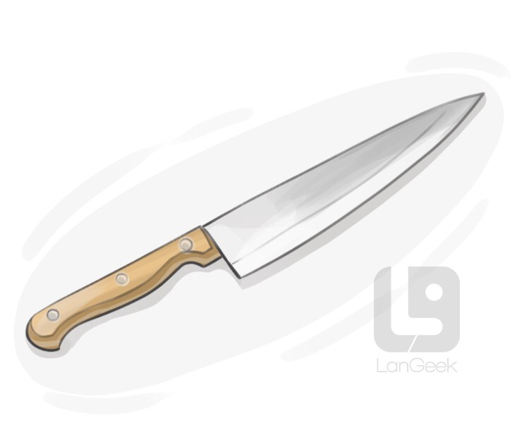 a sharp knife with a long blade that is used to cut cooked meat