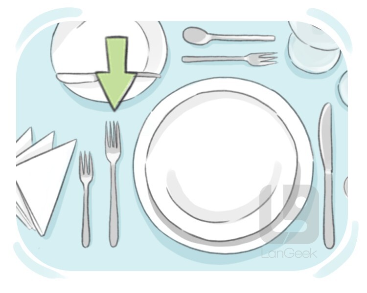 a utensil with multiple tines used for eating solid food items, typically used during the main course of a meal