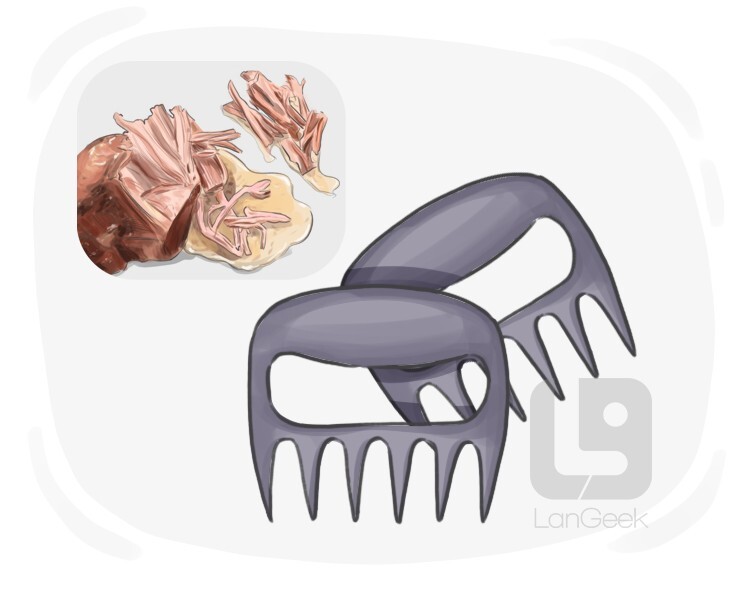 handheld kitchen tools that resemble bear claws and are used for shredding and handling large cuts of meat, such as pulled pork or brisket