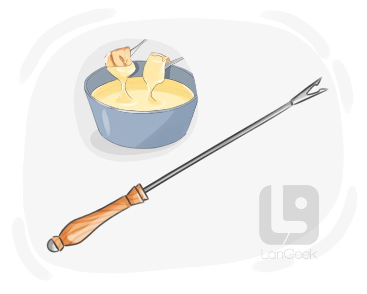a long-handled fork used to dip bread, fruit, or other foods into a pot of melted cheese, chocolate, or other similar dip