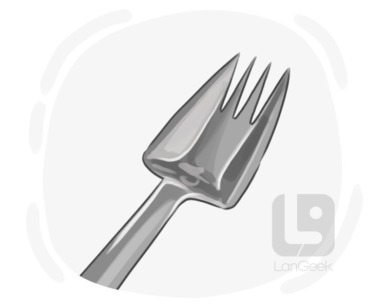 an object with a handle and three or four sharp points that we use for picking up and eating food