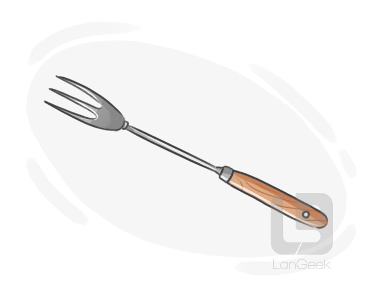 a long, two-pronged fork designed to hold meat or poultry in place while it is being carved, often with a handle that is easy to grip and a sharp point to pierce the meat