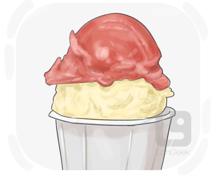 a sweet and cold dessert that is made from a mixture of milk, cream, sugar, and various flavorings