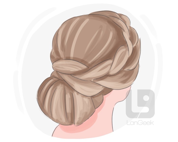 a woman's hairstyle in which the hair is pulled back, twisted and pinned at the nape of the neck
