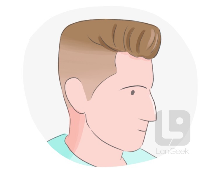 a man's hairstyle in which the front part is pushed upward and higher than the rest