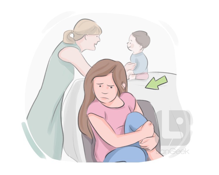 a feeling of distress, shyness, or guilt as a result of an uncomfortable situation