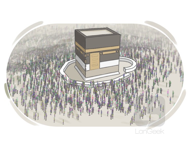 a black cube-like building located inside a mosque in Mecca, which is the holiest place for Muslims and which they pray towards and walk around as a religious ceremony