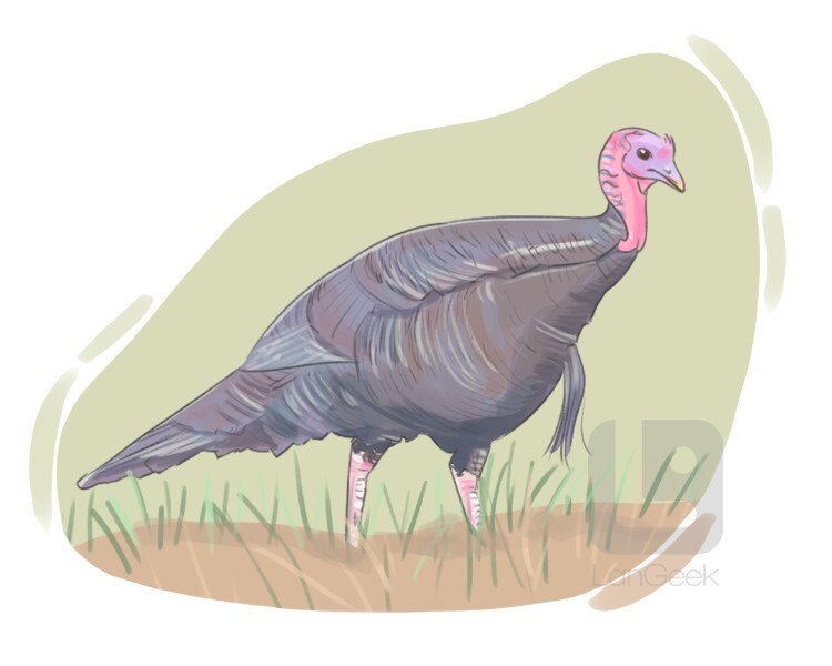 a large bird that has a bald head and is often kept for its meat, especially in the US