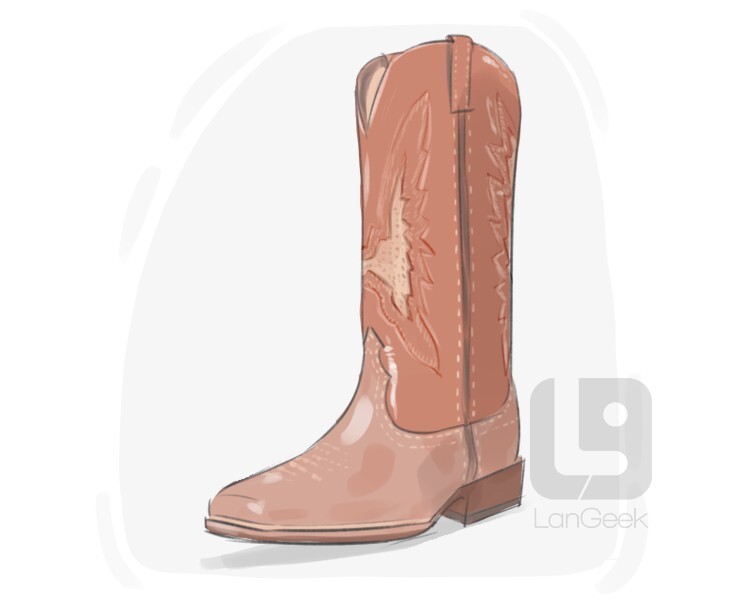 a leather boot with a pointed tip, raised heel and calf-high shaft, originally worn by cowboys