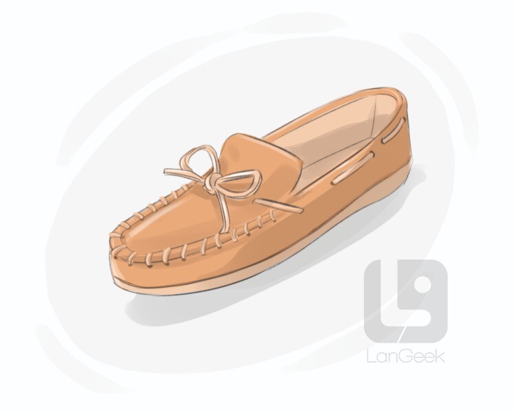 a flat leather shoe without a separate heel, the sole of which is brought up and stitched to the top, originally worn by Native Americans