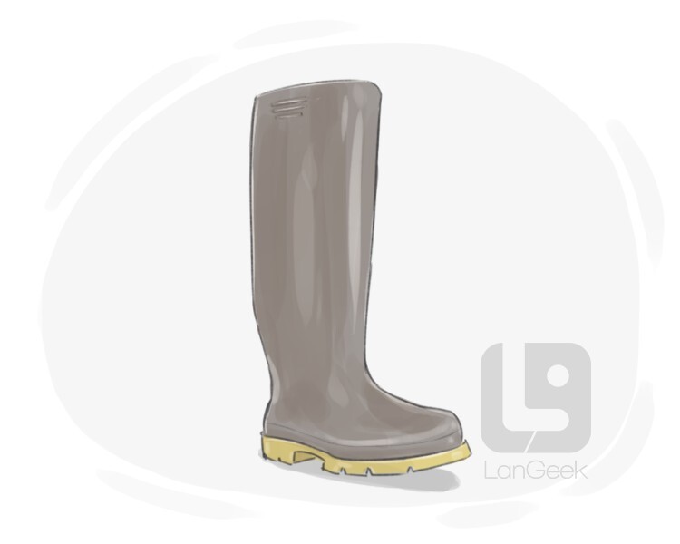a waterproof, typically rubber boot worn to protect the feet from getting wet in rainy or wet conditions
