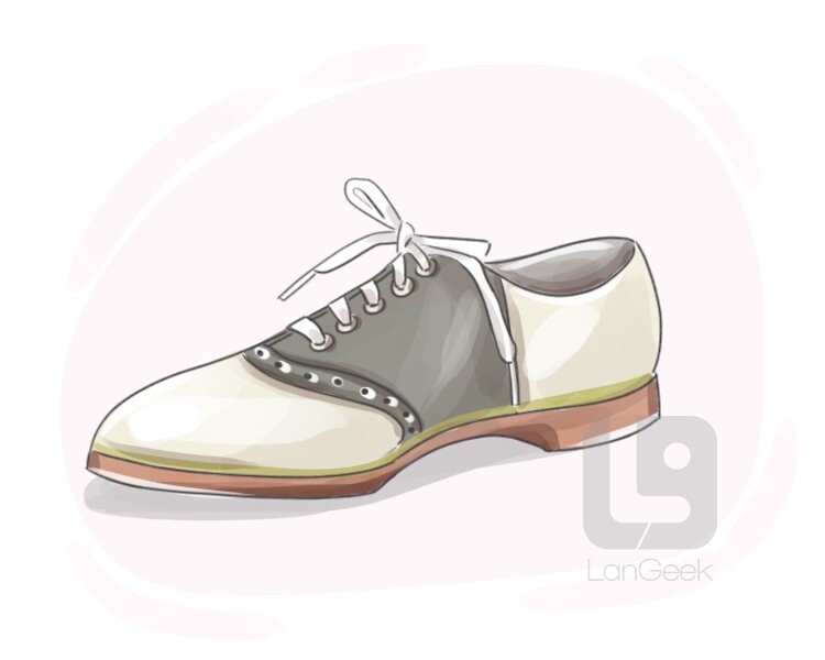 a casual shoe style featuring a white leather toe and contrasting color leather "saddle" extending over the arch of the foot