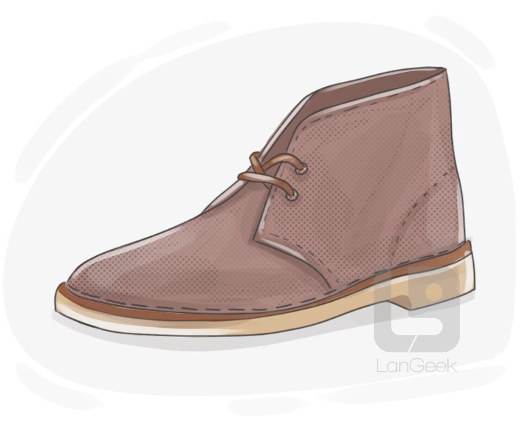an ankle-high boot with a suede or leather upper, a crepe rubber sole, and two or three eyelets for lacing