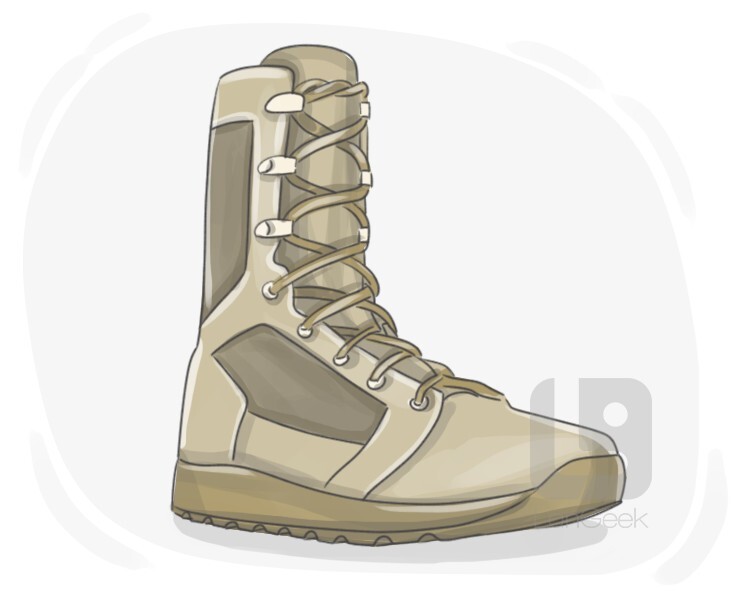 a type of strong shoe that covers the foot and ankle and often the lower part of the leg