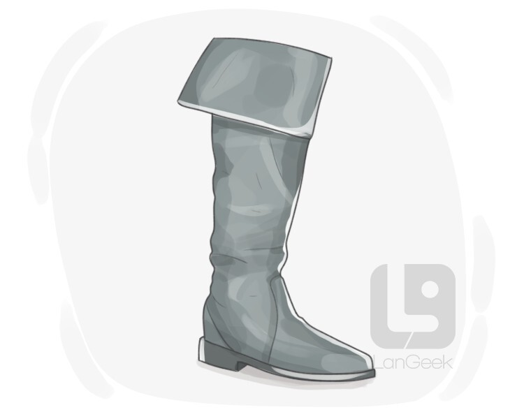 a rubber or plastic boot that extends to the knee and is waterproof, originally a military leather boot common in 19th century