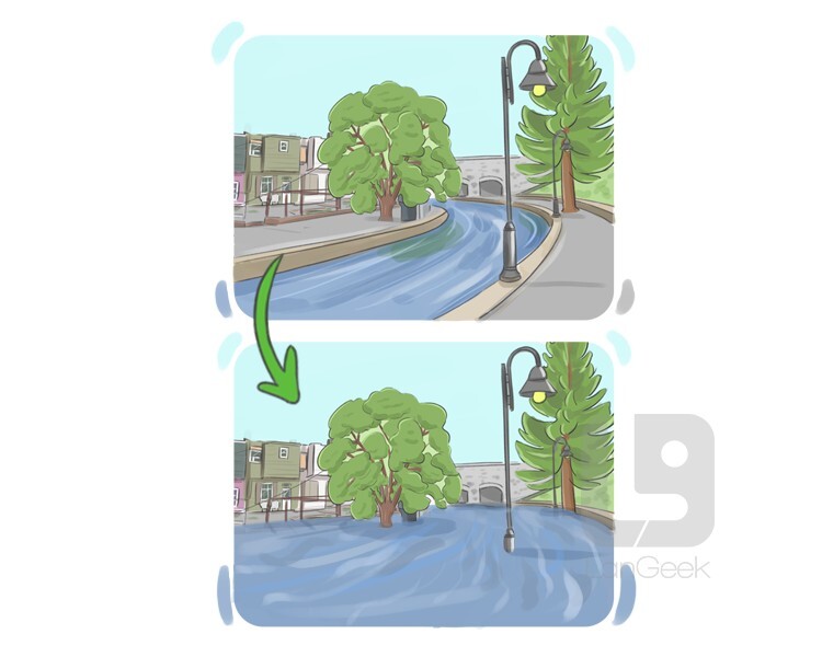 (of a river) to become filled and overflown with water and spread it onto the surrounding lands
