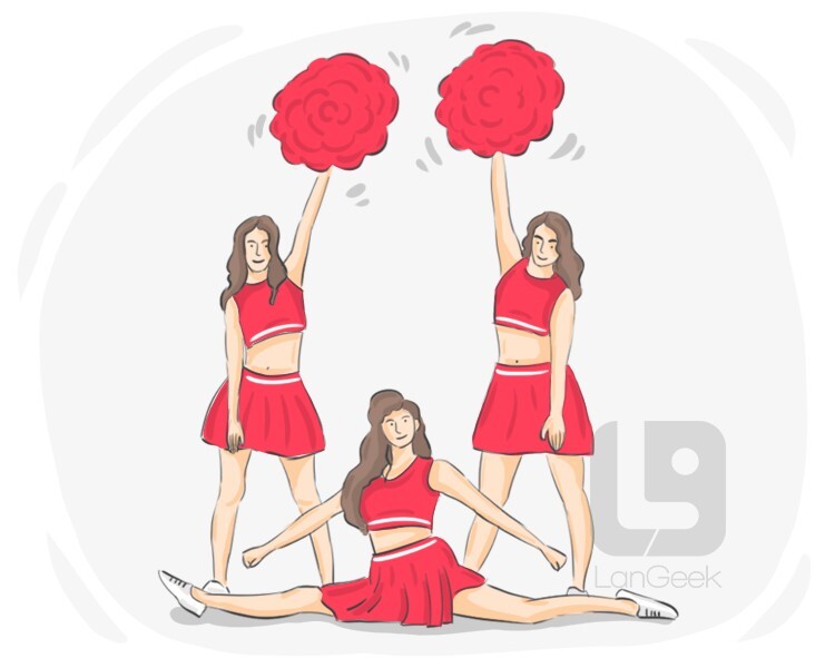 a person, typically a member of a team or squad, who performs organized cheers, chants, and routines to encourage and support sports teams