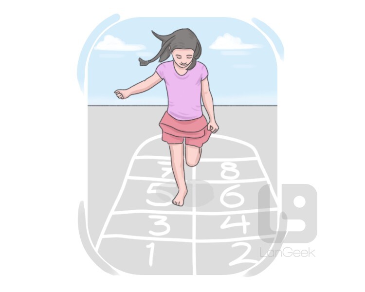 a game for children, in which each player throws a stone, marker, etc. on a squared pattern that was drawn on the ground and hops on them to pick it up