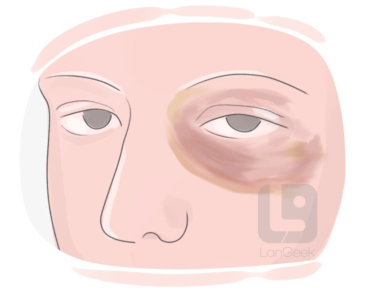 an area of bruised skin surrounding the eye caused by a blow or injury