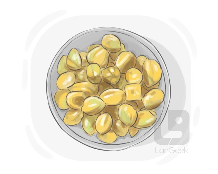 a vegetable, usually a small cucumber, that is preserved in salt water or vinegar