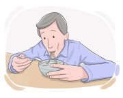 Він жував їжу із закритим ротом, демонструючи хороші манери.