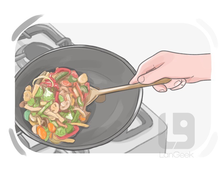 to cook small pieces of meat or vegetables by constantly moving them around in very hot oil