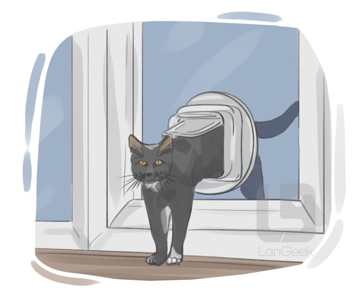 a small hole in the bottom of the entrance door that is covered by a piece of often transparent plastic which easily swings to allow pets an easy way into and out of a house