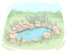 Спокійний ставок відбивав кольори навколишніх дерев і неба, створюючи мальовничу сцену.
