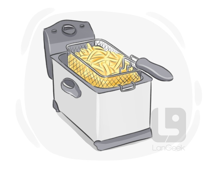a kitchen appliance used to heat and fry foods in hot oil, often used for making fried foods such as French fries, chicken, and fish