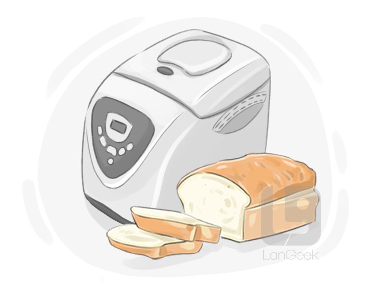a kitchen appliance designed for making bread, featuring a built-in mixing and kneading mechanism, a heating element, and a baking pan