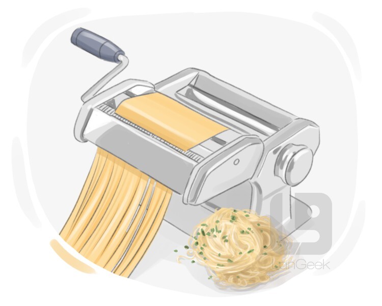 a kitchen appliance used for making pasta from scratch, typically by rolling and cutting dough to create various types of pasta shapes