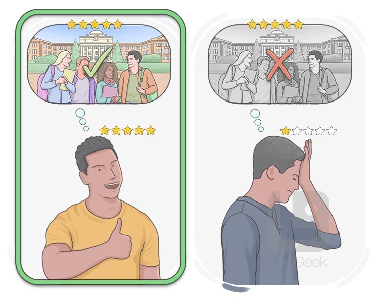 feeling satisfied with someone or one's possessions, achievements, etc.