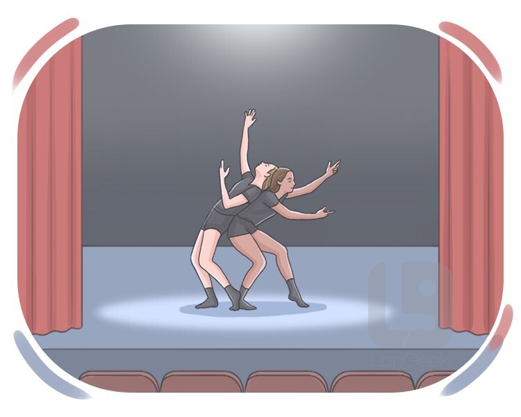 an elevated area, especially in theaters, on which artists perform for the audience