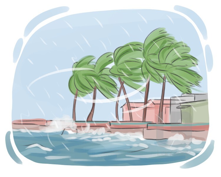 a very strong and destructive wind that moves in circles, often seen in the Caribbean