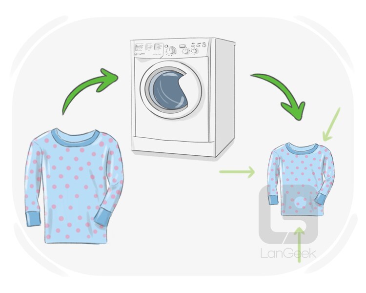 (of clothes or fabric) to become smaller when washed with hot water
