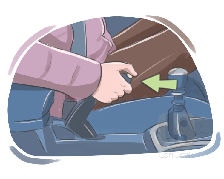 a brake that is operated by hand to hold a vehicle in place