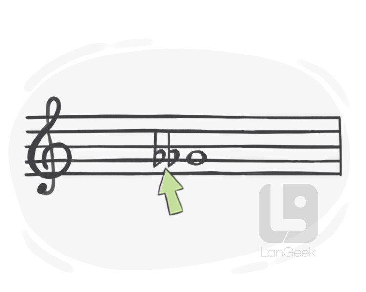 a musical symbol indicating a pitch that is one half step lower than the note indicated