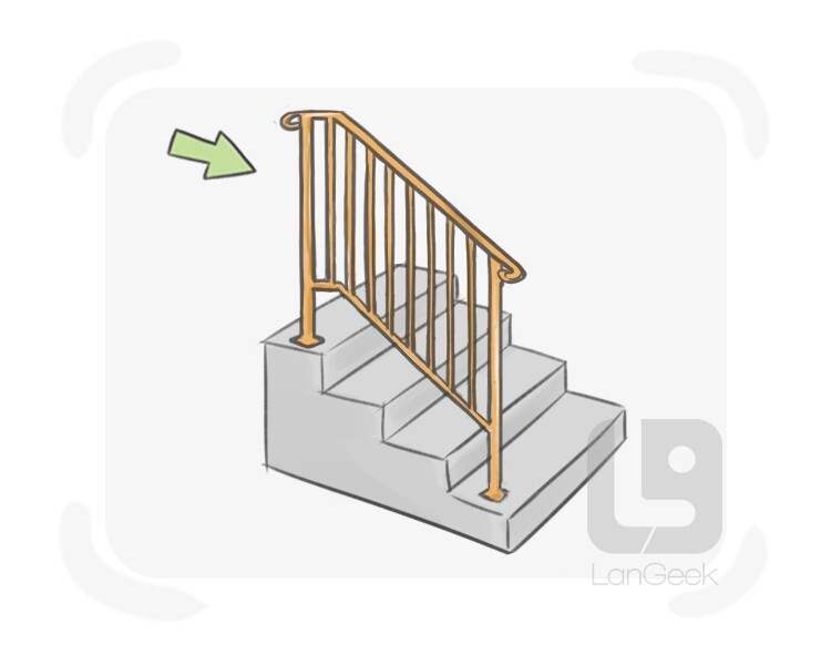 a supportive rail fixed to a staircase or walkway, providing a handhold for stability and safety while ascending or descending