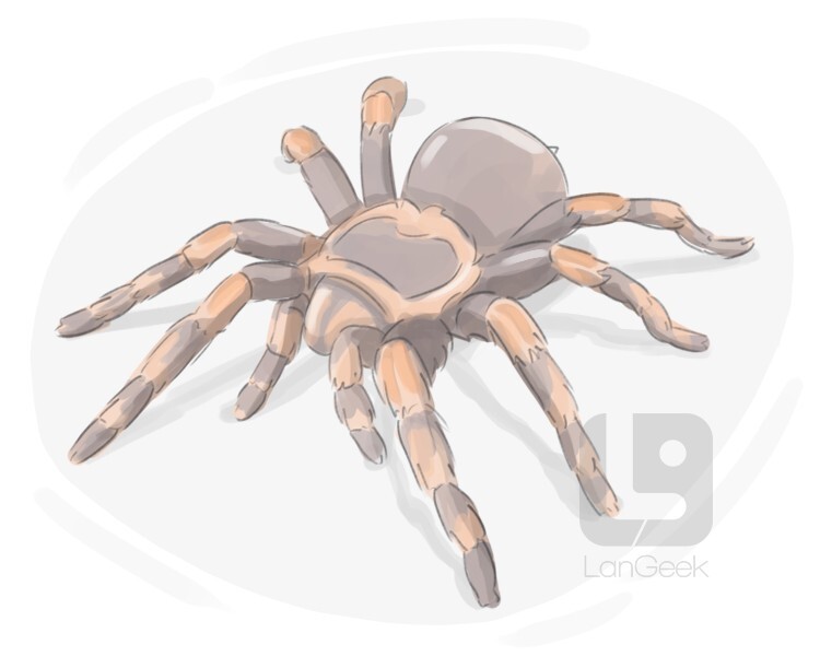 a large hairy spider originated in warm regions with venomous fangs that does not spin any webs or threads