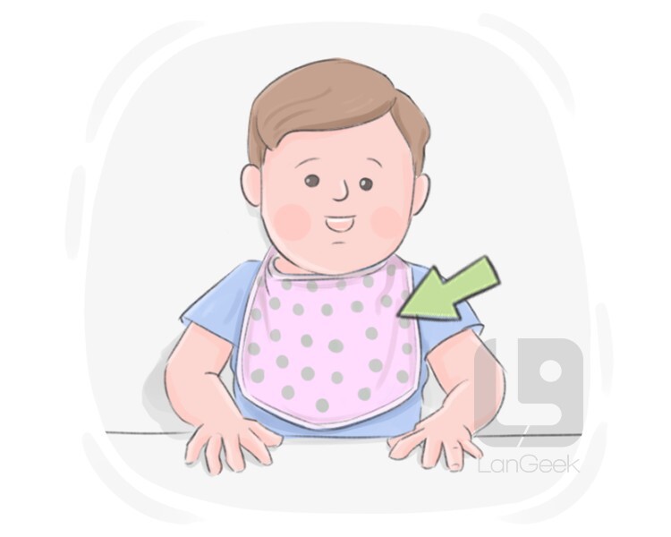 a piece of cloth or plastic fastened at the neck of a child to protect its clothes when eating or drinking