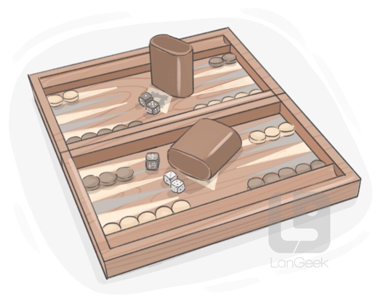 a two-player board game in which each player has 15 pieces that can move along 24 long triangles called points based on the throw of dice, the winner is the first player who manages to move all their pieces out of the board