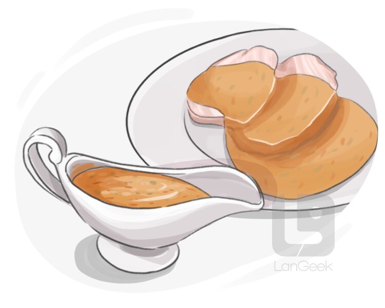 a thick creamy sauce made with milk, eggs, sugar, flour or corn flour that is served hot on top of puddings, fruits, etc.