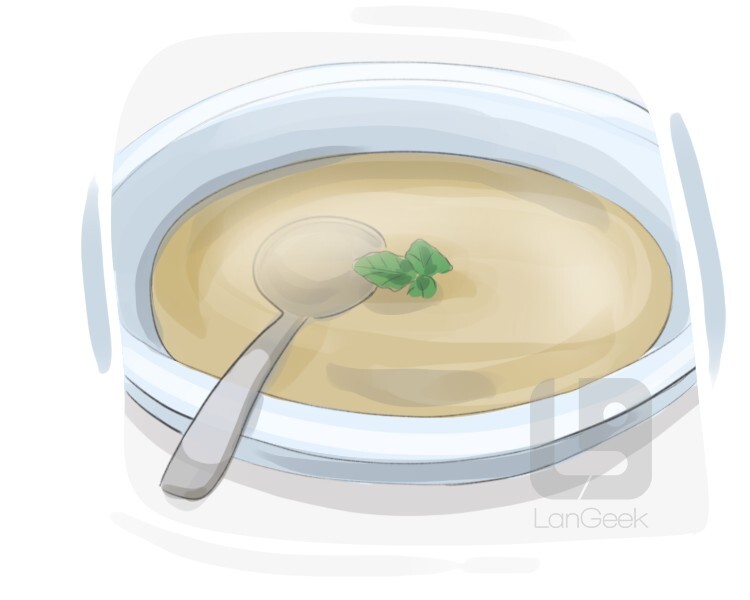 a type of broth made from boiling meat, vegetables, and herbs in water
