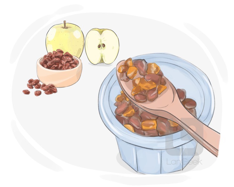 a mixture of chopped fruits, spices, and sometimes meat, traditionally used as a filling in pies and desserts