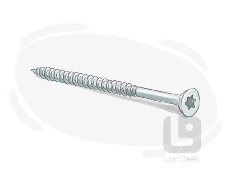 a threaded fastener with a pointed tip and helical threads along its shank, specifically designed for securely joining pieces of wood together by creating a threaded hole in the wood as it is driven in, offering strong and reliable fastening in woodworking projects