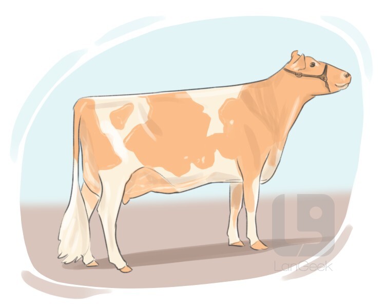 a breed of dairy cow that is red and white in color, originally from Guernsey in Channel Islands