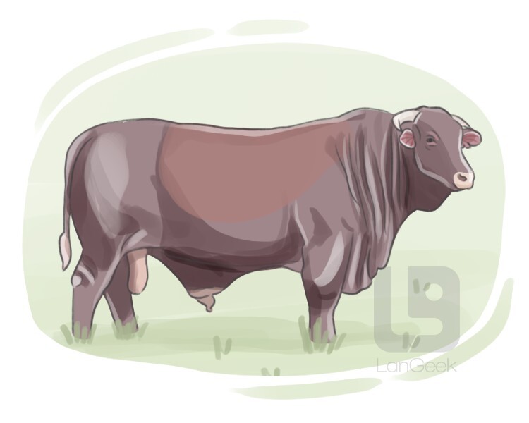 a breed of cattle that is a cross between Brahman and Angus cattle, known for their heat tolerance and marbling quality of meat