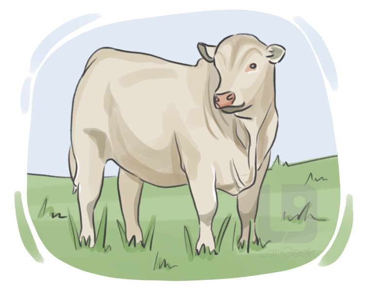 a large breed of beef cattle known for their distinctive white coloration, robust build, and high-quality meat production