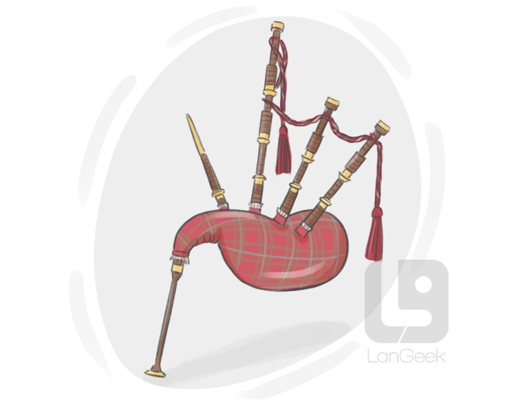 a wind instrument with a reed and several sticks, played by squeezing a bag and blowing through one of its pipes, originated from Scotland
